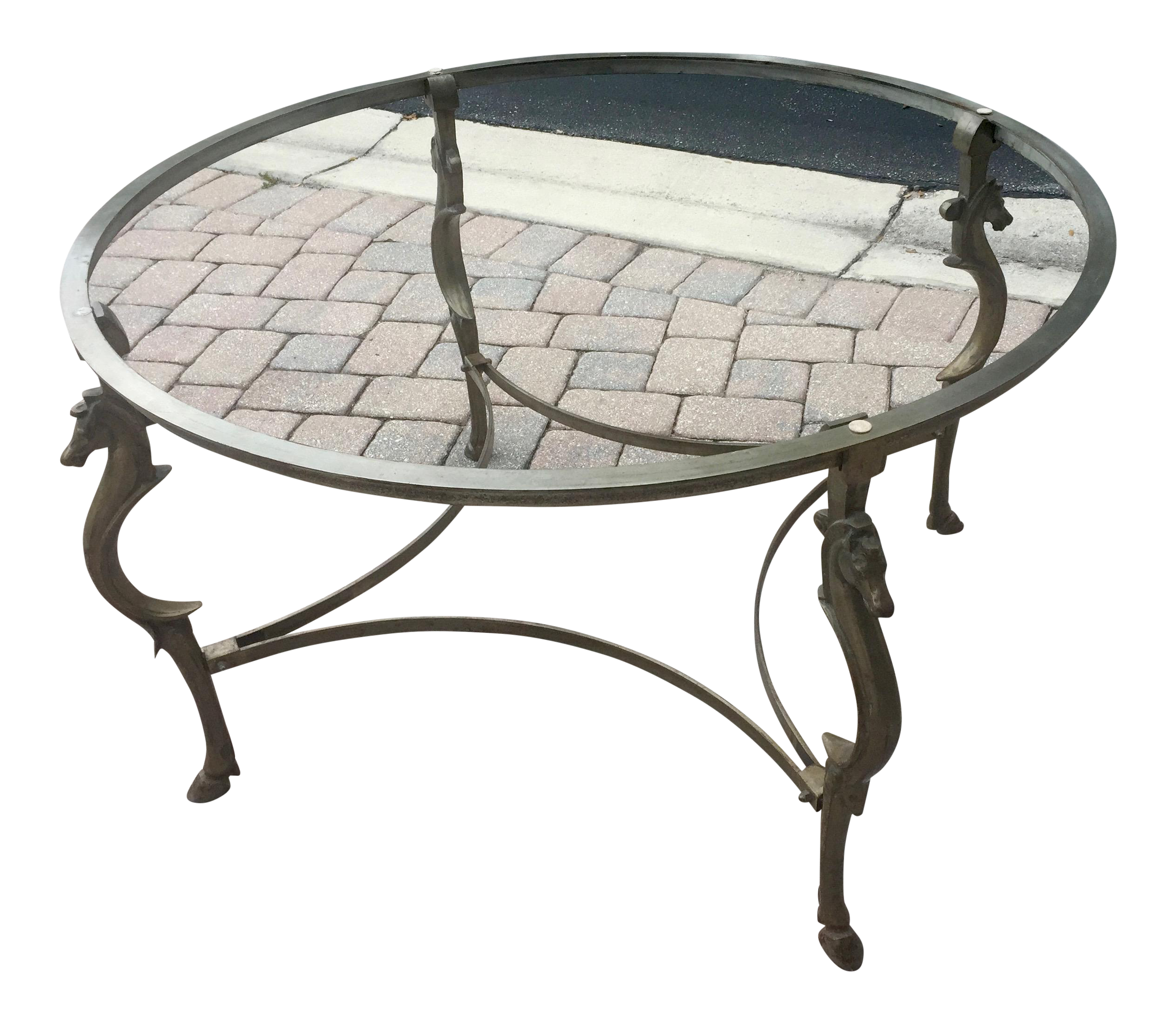 It flaunts a clear, tempered glass top and forged iron frame with subtle rings and curves finished in rustic bronze patina. A rectangle coffee table is the most popular type of modern glass coffee table. Accent your living room with a coffee, console, sofa or end table. The top is made of clear, tempered glass. The best coffee table decor ideas simply complement your home's style and add flair you with decorative arrangements and accents. The horses are about 14 inches tall. The end tables the base is 26 inches and 28 inch diameter glass, 25 inches tall. The carousel poles and canopy are in a pewter tone. The 4 horses are in earth tones, tan, dark grey, rust, and off white. Chinese horse hoof foot end table of solid elm wood 17 high. The distressed pine edge has a leather braided horse whip in between the layers. Allium coffee table/glass top gray wash finish reclaimed douglas fir, tempered glass material traditional style some assembly required dimensions (in.): This makes it easy to find something deviating from the norm, but still in line with the vision of your room.