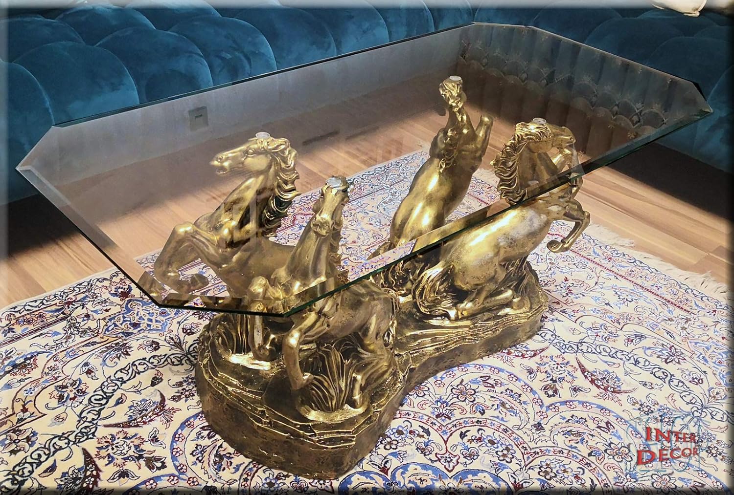 Horse Glass Top Coffee Table : Modernique Roman Horse Base Coffee Table In Italian Style Shiny Gold Cream Finish Tempered Glass Top Gold Amazon Co Uk Kitchen Home : Get the best deals on glass coffee table antique tables when you shop the largest online selection at ebay.com.. A carousel horse coffee table featuring a glass top, with four carousel horses below. As far as unique glass coffee tables go, this one is the coolest and most adorable you have ever seen. Whether you're into classic, rustic, farmhouse or modern styling and have a glass or wooden table, here are the best ways to decorate a coffee table in your living room. The distressed pine edge has a leather braided horse whip in between the layers. ( 4.5 ) out of 5 stars 4 ratings , based on 4 reviews current price $219.99 $ 219.